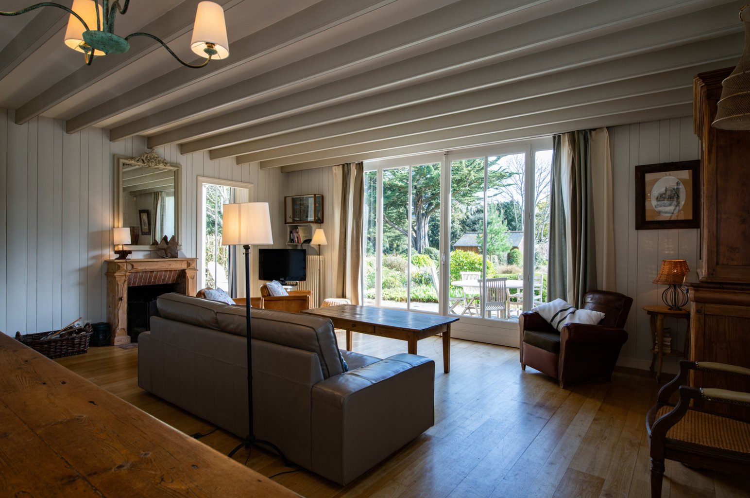 In these large seaside cabins located in the Rimains Garden, the furniture and decoration are both